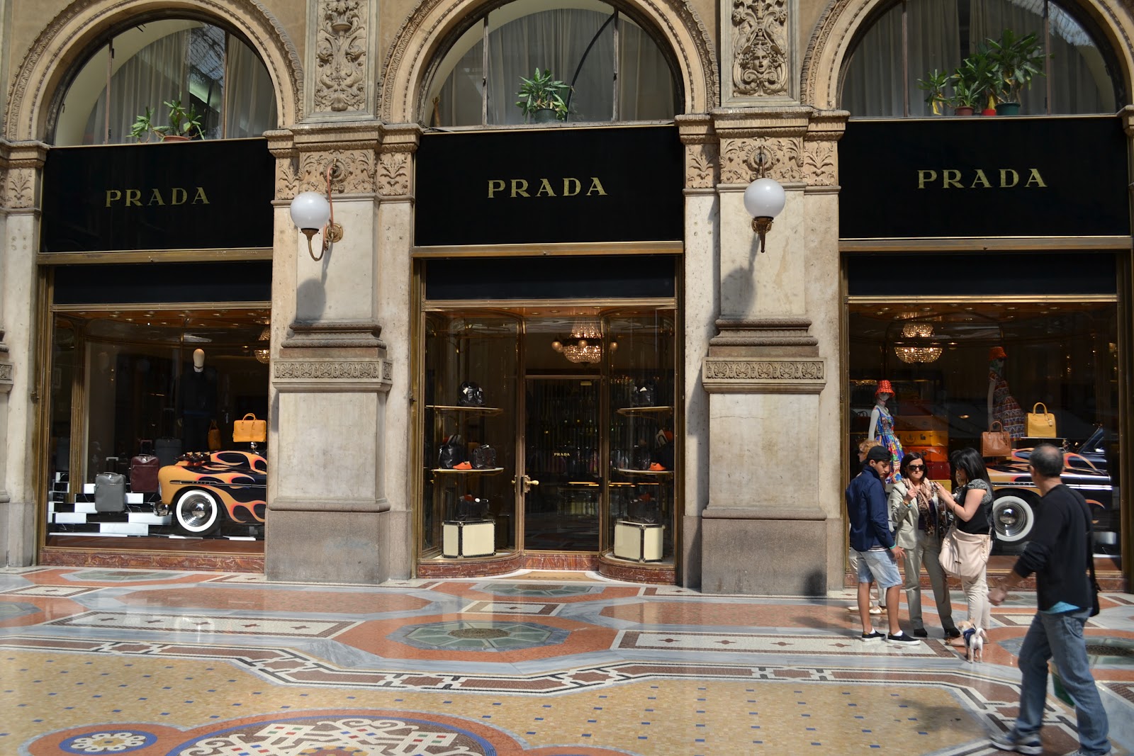 6. Výloha Prady plná aut. / Prada window shop with cars.