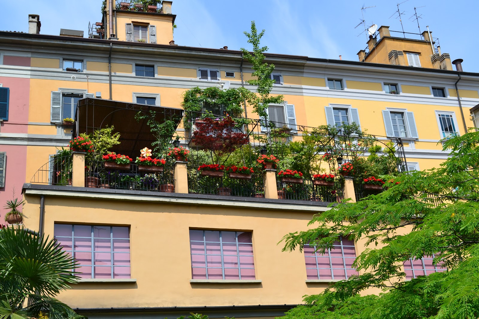 aw i like the 4th picture, patio with so many flowers. i'll visit milan too someday >w<