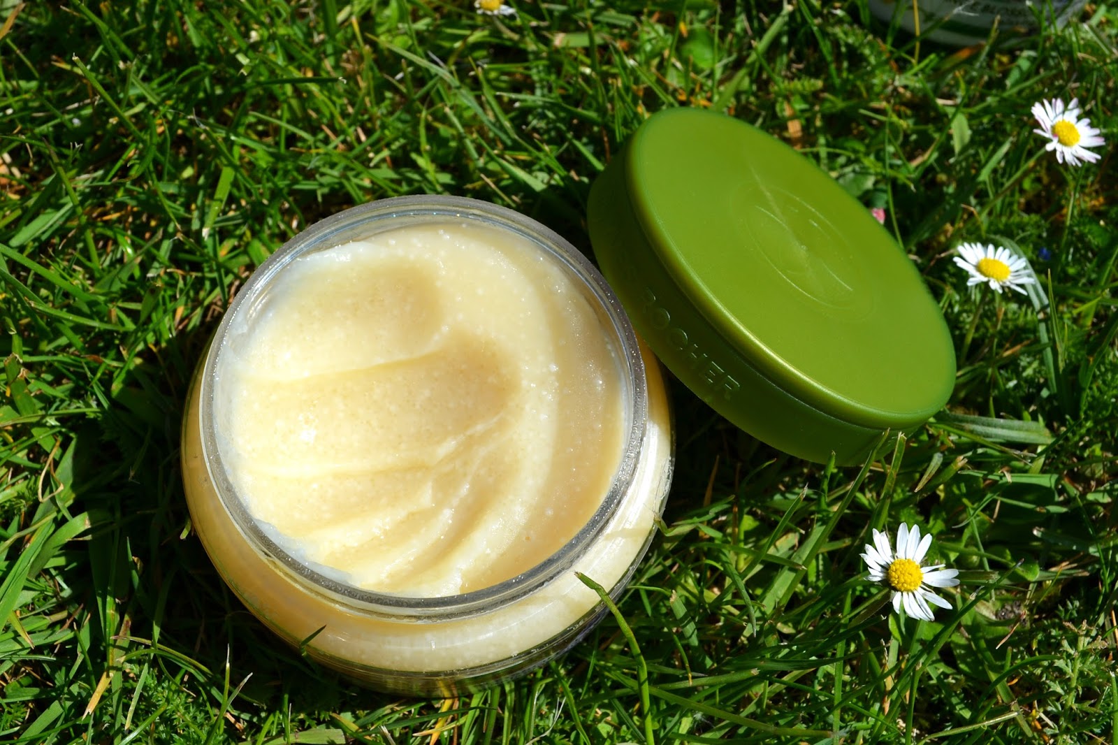 Na začátek bych si dovolila vypíchnout krásnou vůni, která mi připomíná spojení čisté mýdlové vůně s vůní lučního kvítí a čerstvě posekané trávy. Ale je to vůně poměrně specifická a troufám si odhadovat, že nebude asi sedět úplně každému. Navíc má neskutečnou výdrž. Když jsem produkty použila večer, ještě druhý den ráno jsem na sobě vůni cítila. Co mi na produktech vadí nejvíc je jejich konzistence. Oba jsou dost hutné a poměrně špatně se s nimi pracuje. Balzám má konzistenci ztuhlého másla a peeling zcukernatělého medu.